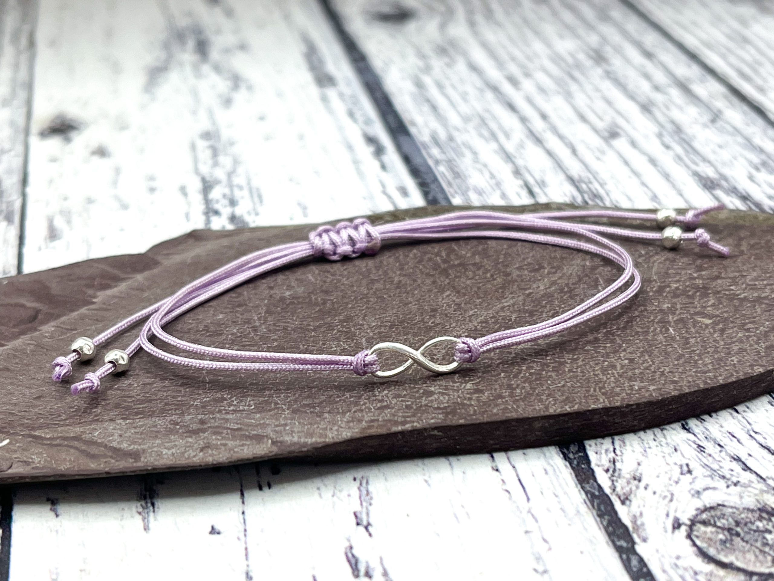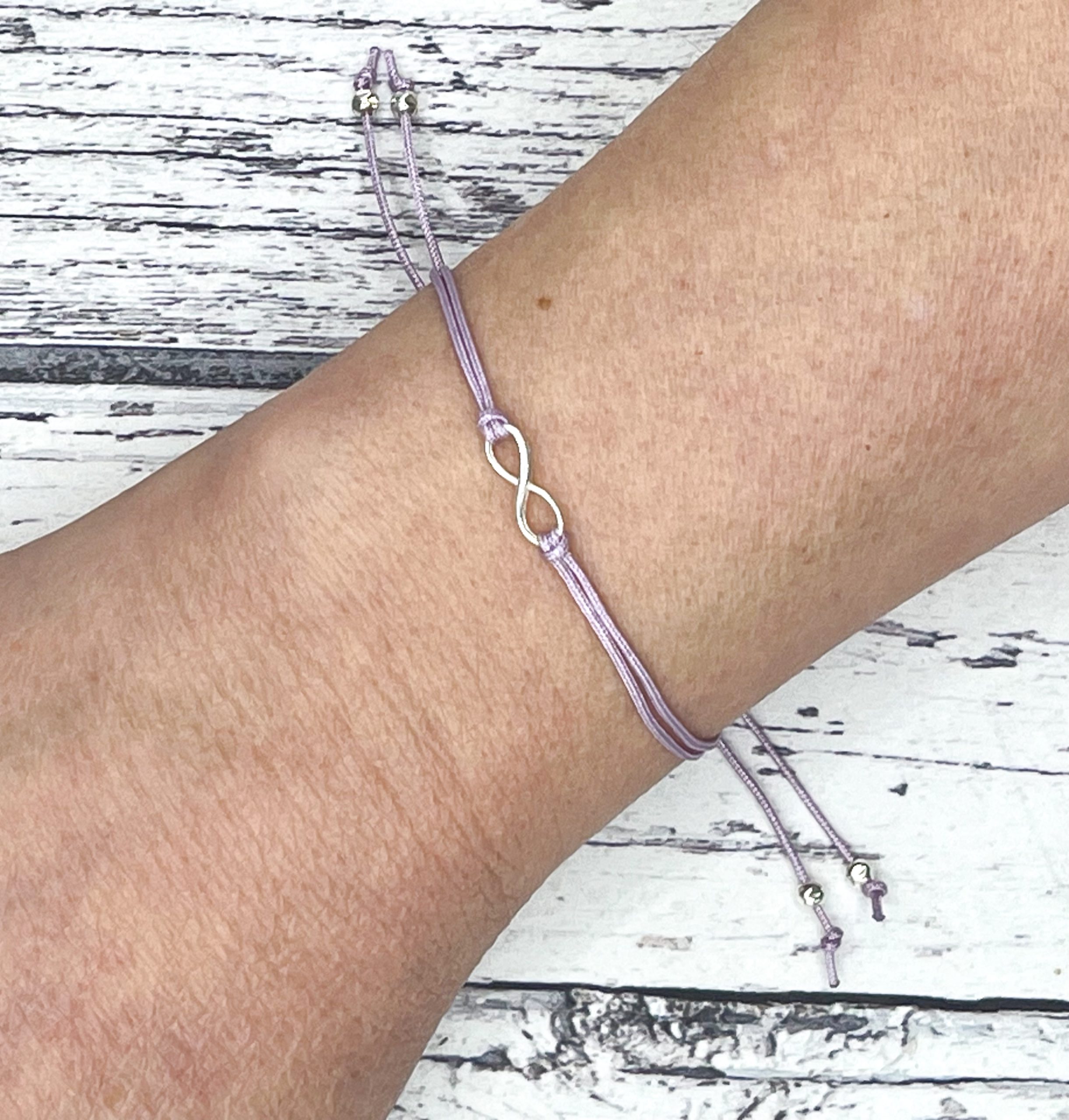 Featuring a sterling silver Infinity centrepiece charm and stopper beads.