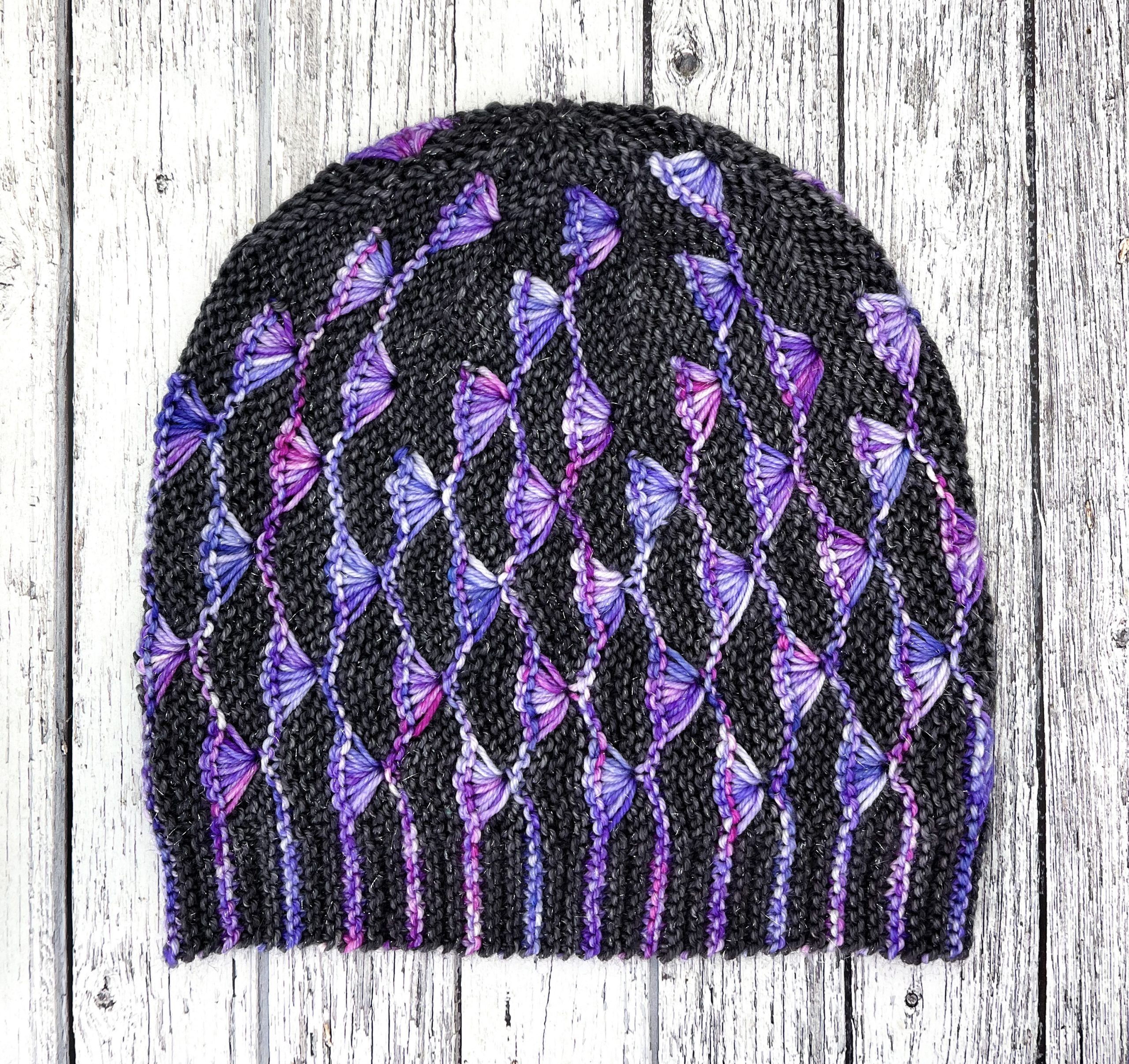 75% merino wool knitted hat in sparkly Charcoal & Purple Maniac.
